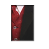 Chaqué rojo Mod 2-12 compuesto de 5 piezas : Chaqueta y pantalón negro, camisa blanca , chaleco y corbata crudo estampada.