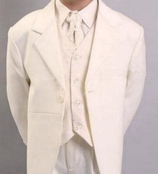 Chaqué Crudo Mod 2-17 compuesto de 5 piezas : Chaqueta cruda y pantalón crudo de raso, camisa blanca raso , chaleco y corbata crudo estampada.