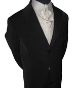 Chaqué negro Mod 2-37 compuesto de 5 piezas : Chaqueta y pantalón negro, camisa blanca , chaleco y corbata plateada.