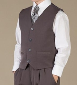 Chaqueta, pantalón, camisa manga larga chaleco y corbata.![]()