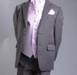 Chaqueta y pantalón negro, camisa y chaleco rosa , corbata rosa estampada