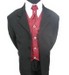 Chaqueta y pantalón negro, camisa y chaleco granate , corbata granate estampada.