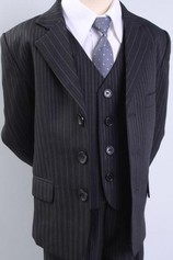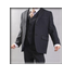 Traje clásico Mod 2-02 compuesto de 5 piezas : Chaqueta y pantalón y chaleco Azulado base negra con raya azul raso y linea color crema, camisa blanca ,corbata estampada azul.