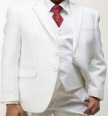 Traje Blanco Mod 02-22 compuesto de 4 piezas : Chaqueta , chaleco y pantalón crudo-blanco , corbata estampada emblema cáliz.