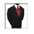 Chaqué rojo Mod 2-01 compuesto de 5 piezas : Chaqueta y pantalón negro, camisa blanca , chaleco y corbata roja estampada.