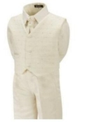 Chaqué Crudo Mod 2-17 compuesto de 5 piezas : Chaqueta cruda y pantalón crudo de raso, camisa blanca raso , chaleco y corbata crudo estampada.