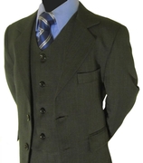 Chaqueta, pantalón, camisa manga larga chaleco y corbata.![]()